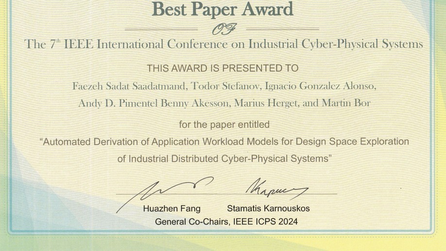 The paper 'Automated Derivation of Application Workload Models for Design Space Exploration of Industrial Distributed Cyber-Physical Systems' received the Best Paper Award at IEEE ICPS '24!