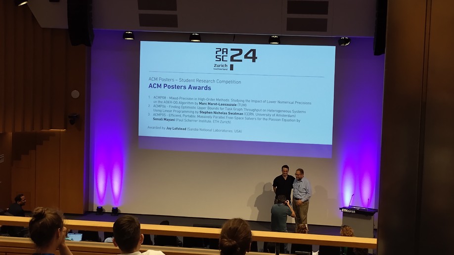 Stephen Swatman won the second prize at the PASC24 ACM student research competition in Zürich.